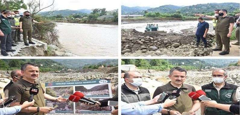 "Elbette buradaki vatandaşımız çay üretimine devem edecek, elbette buradan bir gelir sağlayacak, bölgenin en önemli gelir kaynaklarından bir tanesi ama koruma kullanma dengesine de mutlaka sahip çıkıyor olmamız gerekiyor. Çünkü burada bizim bir yandan ekmek kapımızın, kazanç kapımızın hayatımızın sonu olmaması gerekir diye düşünüyoruz. Burada tarım, orman ve su alanlarında, özellikle bu havza bazında entegre bir anlayış modeli, bir mikro havza modeli getirmemiz konusunda tüm arkadaşlarla hemfikir kaldık. Tüm bu çalışmaların, yani bugün yaraların sarılması maksadıyla yapılan çalışmaların ötesinde özellikle farklı farklı çalışmalar yaparak da orta, uzun vadede özellikle sel ve taşkınlara sebebiyet veren unsurların mümkün mertebe ortadan kaldırılması, kalkmıyorsa da bunların DSİ ve diğer kamu kurumları vasıtasıyla daha fazla yatırım yapılarak da vatandaşımızın konforunun en ağır meteorolojik koşullar da dahi olsa bozulmamasının sağlanması ana amacımızdır."