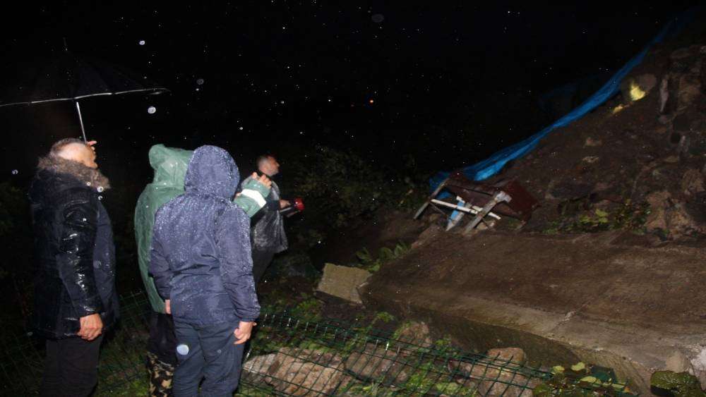 Ordu’nun Perşembe ilçesinde sağanak sonrası meydana gelen heyelan nedeniyle istinat duvarı yıkılan bir ev tedbir amaçlı boşaltıldı.