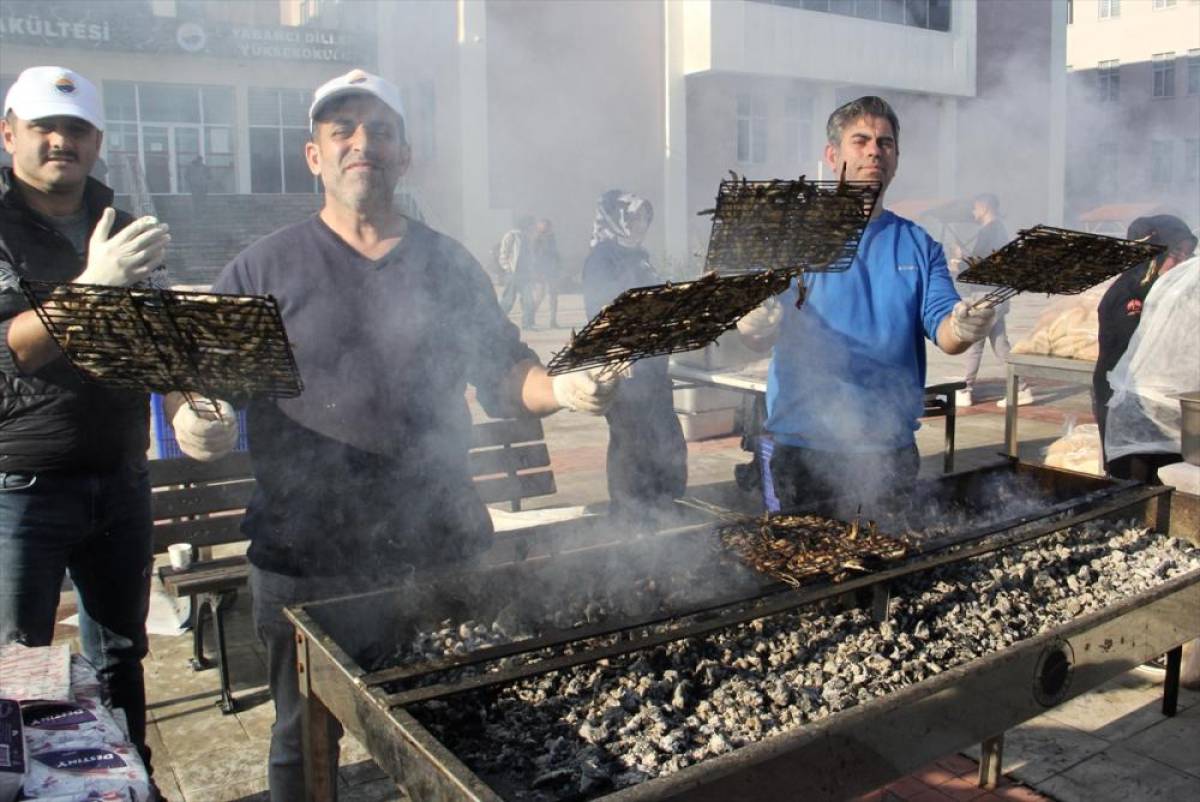 Üniversitenin Öğrenci Yaşam Merkezi'nde gerçekleştirilen şenlikte ızgaralarda pişirilen hamsilerin yanı sıra katılımcılara helva ikramında bulunuldu.