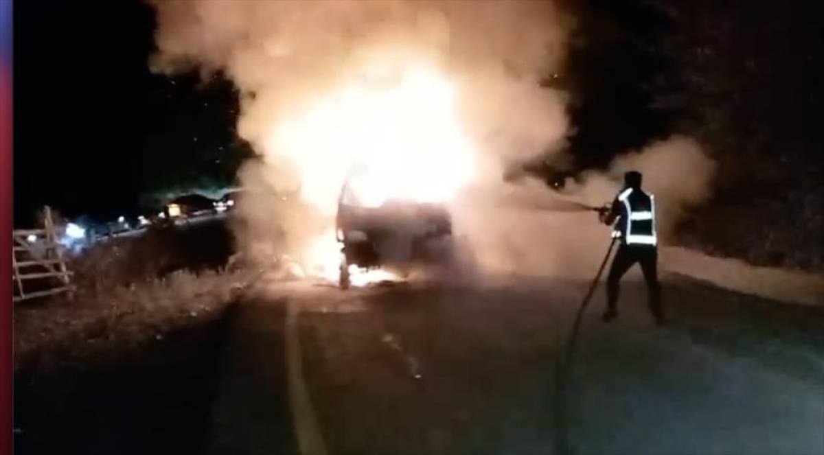 Yangını fark eden sürücü, aracı yol kenarına park ederek durumu itfaiyeye bildirdi.