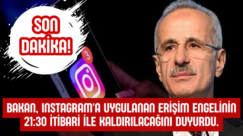 Ulaştırma Bakanı Abdülkadir Uraloğlu, sosyal medya hesabından yaptığı açıklamada, Instagram’a uygulanan erişim engelinin 21:30’da kaldırılacağını duyurdu.