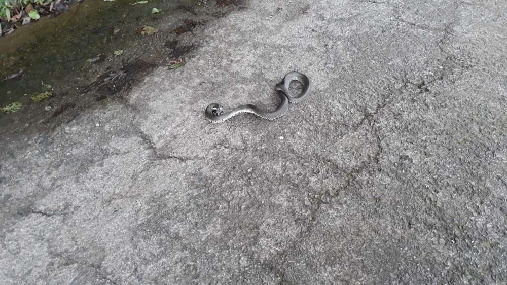 Bulancak Tepeköyü’nde ana yolda aracın çarptığı yaklaşık 2 metre uzunluğunda yılan görenleri korkuttu.