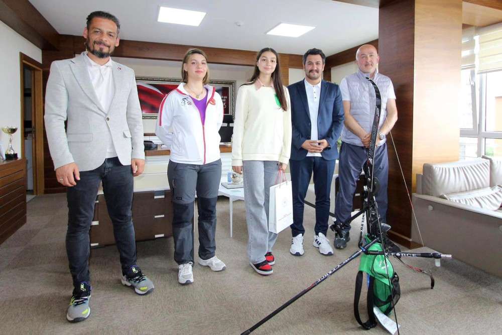 Okul Sporları Gençler Okçuluk Türkiye Şampiyonasında Türkiye 4.sü olan sporcumuz Zeynep Aladağ, İsmail Çalgan’ı makamında ziyaret etti.
