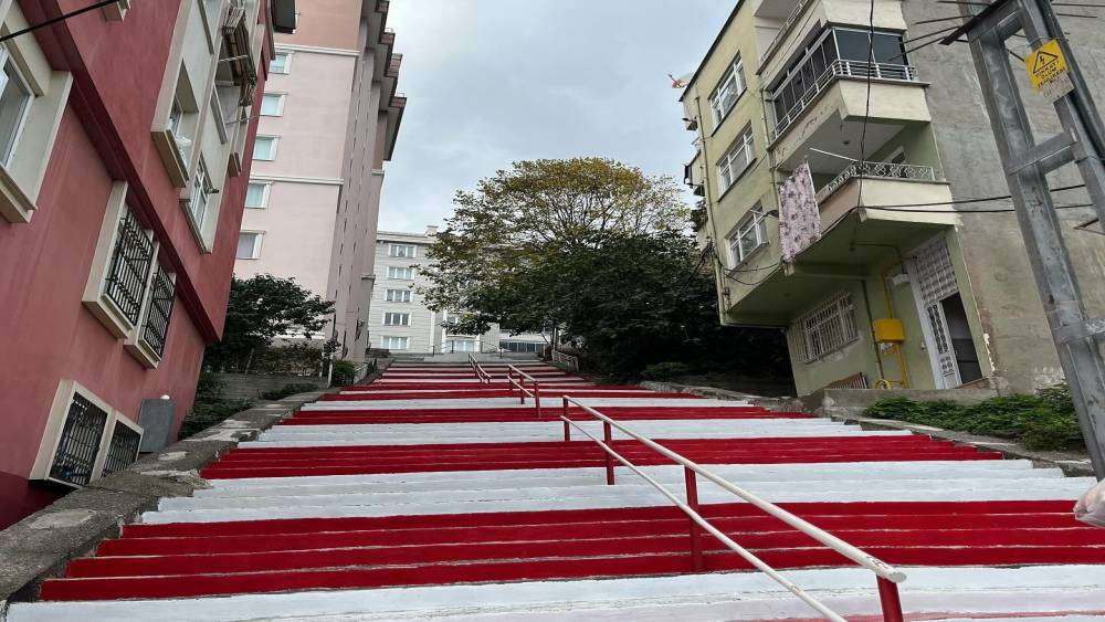 Sporcuların yarışmalara hazırlandığı merdiven kırmızı-beyaza boyandı
