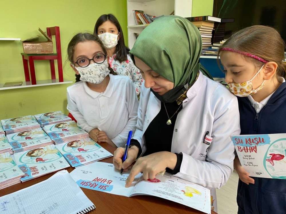 Piraziz Eren Ömer Hekim İlkokulu Sınıf Öğretmeni Saray Yüksel, ‘Su Kuşu Bahri’ isimli resimli çocuk kitabını okulunda tanıttı.