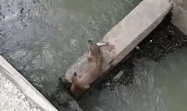Toprakcuma köyü yakınlarındaki hidroelektrik santralinde avladığı balığı yiyen su samuru gören bir vatandaş, cep telefonu kamerasıyla video çekti.