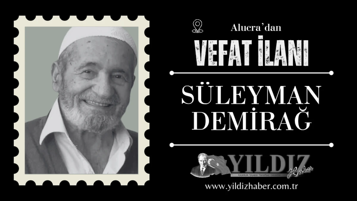 Süleyman Demirağ'ın cenazesi 21 Ağustos 2025 Perşembe günü (yarın) öğle namazına müteakip Alucra Merkez Büyük Camii’nde kılınacak cenaze namazından sonra Kemallı Mahallesindeki aile kabristanlığında toprağa verilecek.