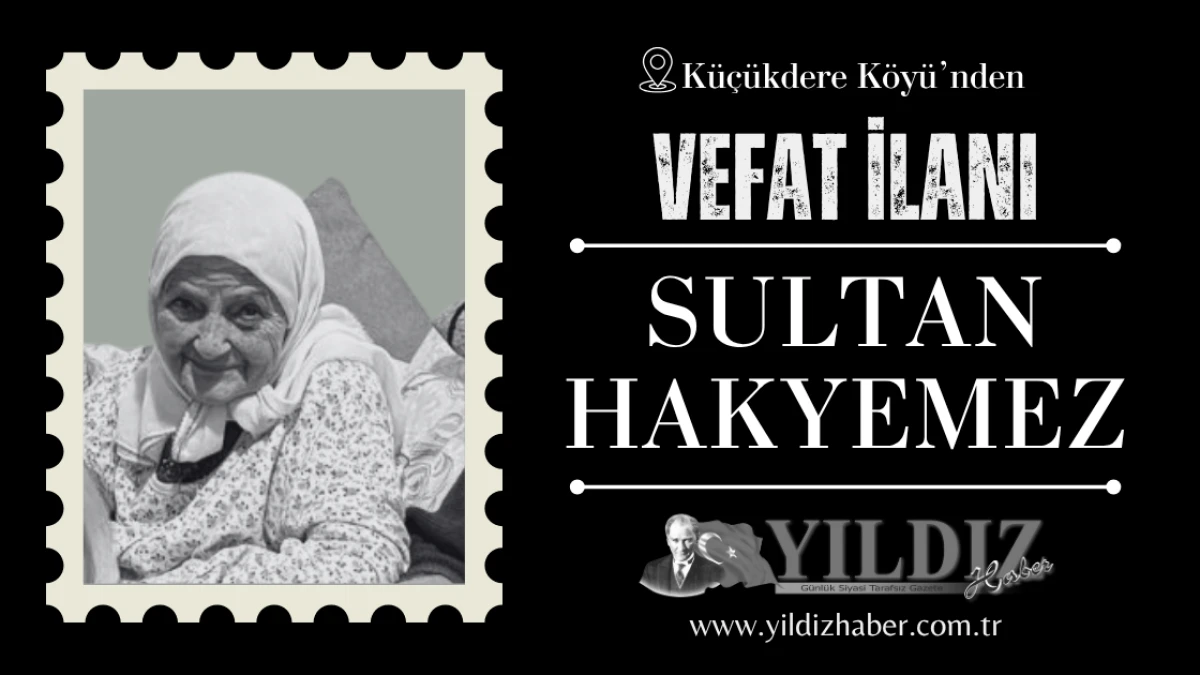 Küçükdere Köyü'nden, Avni Hakyemez’in eşi; Ayşe, Taliye, Mehmet ve Turan Hakyemez’in annesi Sultan Hakyemez vefat etti.