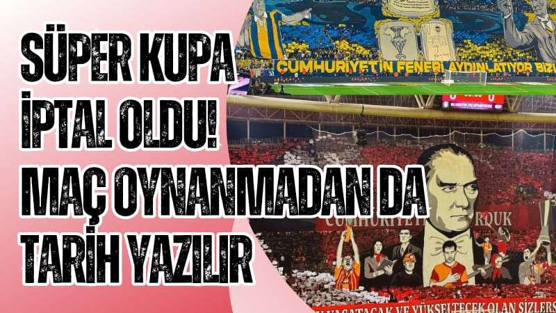Bu akşam gerçekleşecek olan Süper Kupa final maçı, Suudi Arabistan cephesinin aldığı kararlardan dolayı iptal oldu. Fenerbahçe ve Galatasaray kulüplerinin karşılaşacağı kupa maçında Atatürk’ü ve İstiklal marşını yasaklamaya çalışan Suudi Arabistan cephesine karşı iki ekibimizde anlamlı bir duruş göstererek maça çıkmama kararı aldı. Birlikte hareket ederek 100 yıl önce kurulmuş Türkiye Cumhuriyeti’ne 100 yıl sonra da aynı bağ ile sahip çıkarak, böyle bir karar alan iki kulübümüze tüm Türkiye tek yürek olarak destek verdi. Her derbi maçından önce dile gelen “ezeli rekabet ebedi dostluk” sloganını böyle bir karar alarak, bu kadar anlamlı bir hale getiren iki büyük kulübümüze tüm vatandaşlarımızdan destek paylaşımları yağdı.