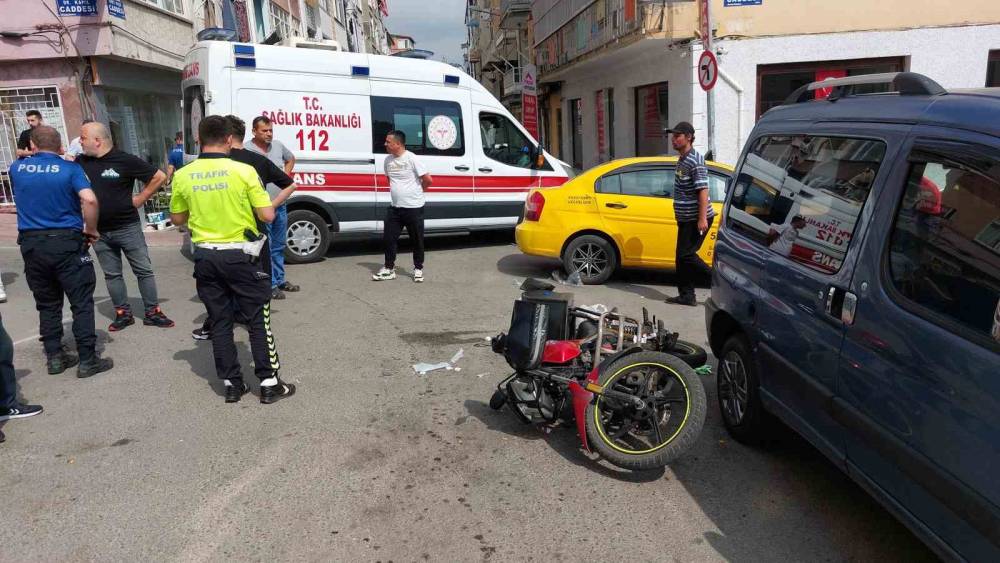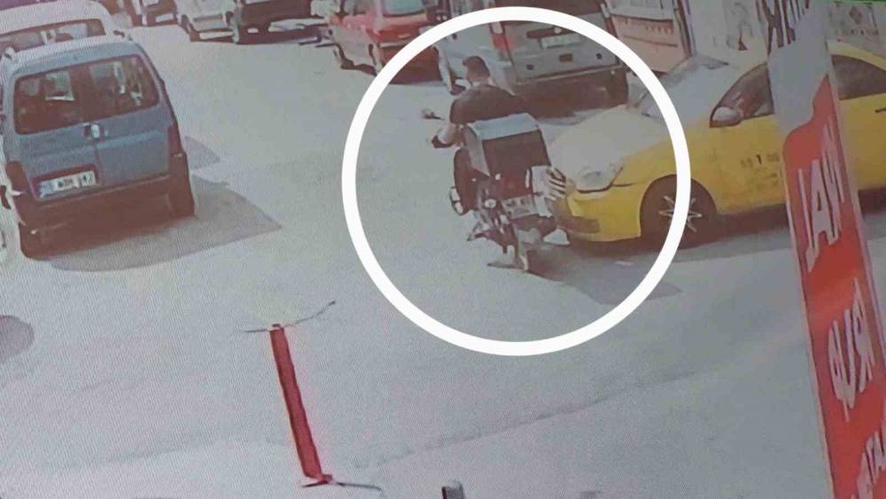 Taksinin motosikletli kuryeye çarptığı kaza kamerada: 1 yaralı