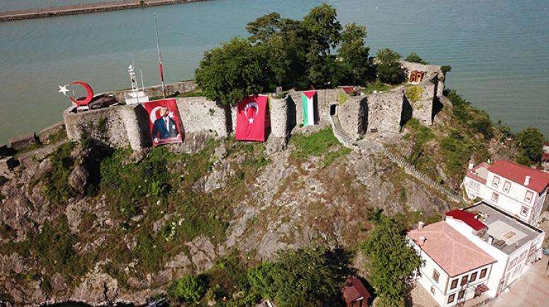 Tirebolu Kalesine Filistin bayrağı asıldı