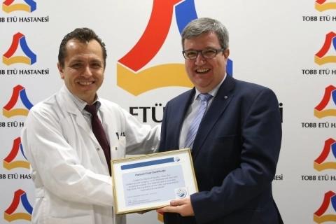 TOBB ETÜ Tıp Fakültesinin Avrupa standartlarına eş değer kalitede hizmet verdiğine dikkat çeken Prof. Dr. Aybek, "Bu sertifika, TOBB ETÜ Tıp Fakültesinin Almanya ve Avrupa ülkelerindeki vatandaşlara sunduğu sağlık turizmi hizmetlerinin kalitesinin resmi bir Alman kurumu tarafından onaylandığını göstermektedir." dedi.