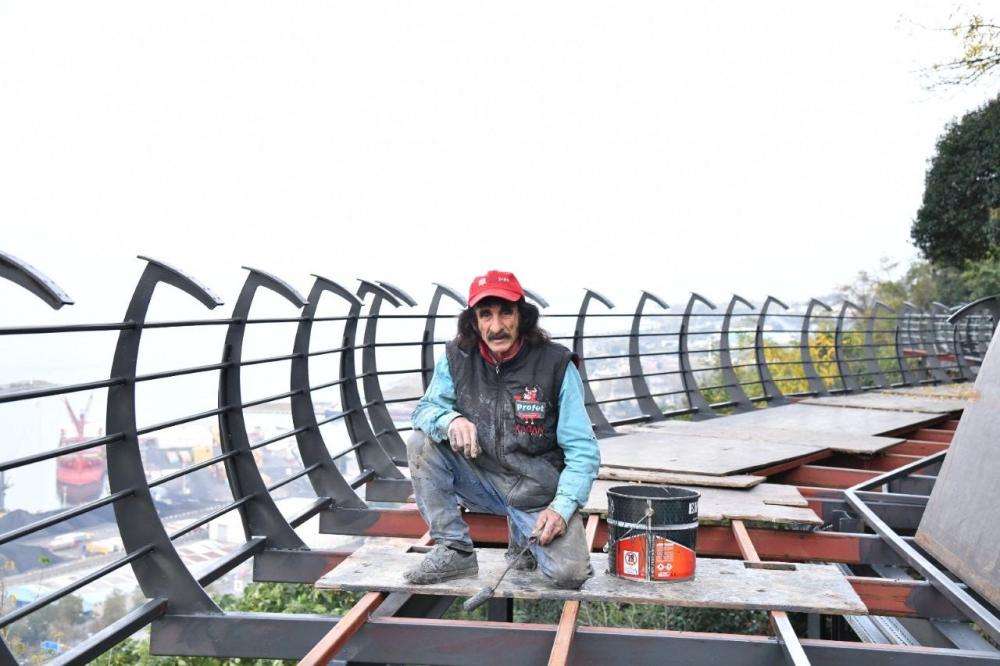 Bu ayaklar üzerinde ahşap yürüyüş platformunun yapım çalışmalarının sürdüğünü aktaran Genç, "Yine projemiz içinde 2 kafeterya, biri cam, biri de ahşap kaplama olacak iki teras yapıyoruz. Seyirlik alanı en güzel yerlerde de 2 ahşap kent balkonu inşa ediyoruz. Balkonlarımızda kameriye, salıncak, ahşap döşemeli oturma alanları ve yeşil alanlar olacak. Cam teraslar hariç tüm yüzeyler ahşap kaplama yapılacak." ifadelerini kullandı.
