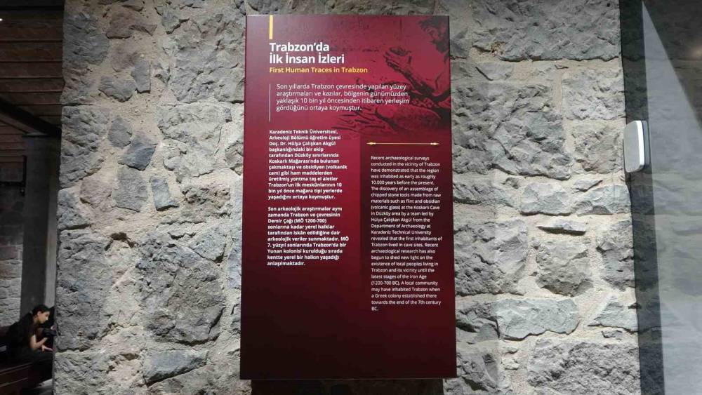 Çakmak taşı ve obsidyen gibi ham maddelerden üretilmiş yontma taş aletler, Trabzon’un ilk meskunlarının 10 bin yıl önce yaşadığını ortaya koyarken, bu döneme ait kalıntılar Trabzon Müzesinde sergileniyor.