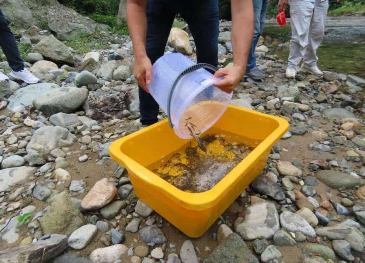 Doğaya salınma aşamasına gelen 5 bin alabalık yavrusu, dereye bırakıldı.