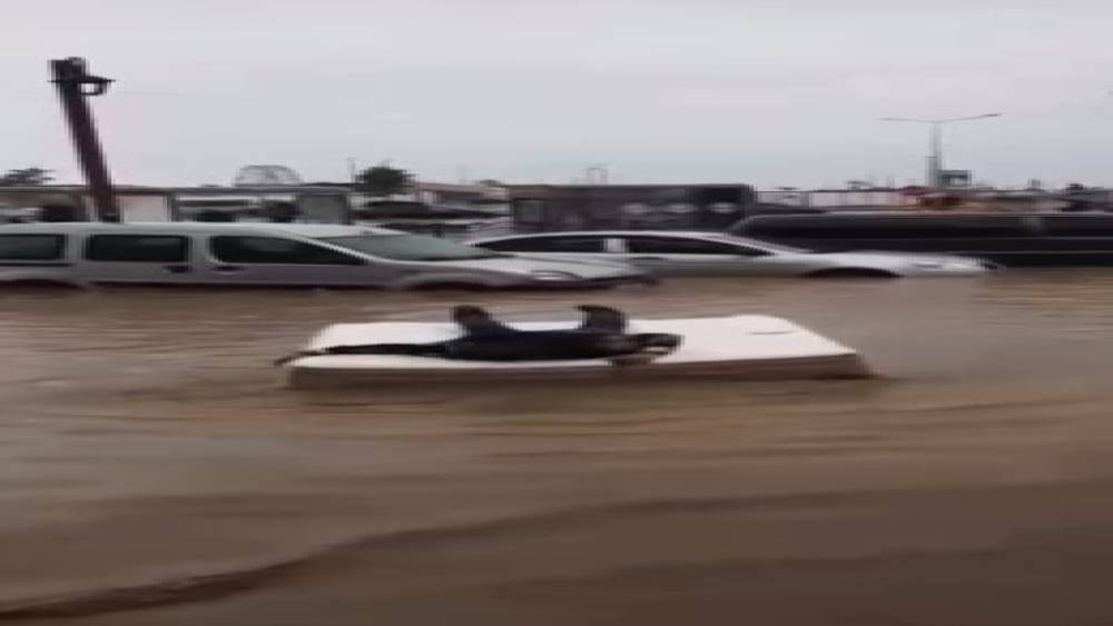 Trabzon’da şiddetli yağış, kent genelinde hayatı olumsuz etkiledi. Yağış nedeniyle birçok noktada yollar ve caddeler göle döndü, ulaşım güçlükle sağlandı. Ortahisar ilçesi Pazarkapı Mahallesi de selden en fazla etkilenen noktalardan biri olurken, bir vatandaşın mahalledeki bir mobilya dükkanından aldığı yatağını suyun üzerine bırakarak adeta "sal" gibi kullanması görenleri güldürdü.