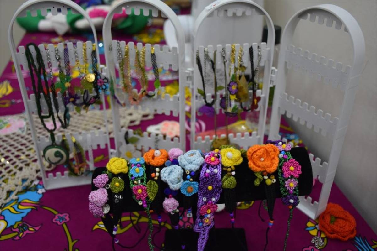 Boncuk kullanarak hazırladığı broşları satışa sunan Rukiye Can Ramoğlu da "Hem sosyalleştiriyoruz hem üretiyoruz, ürettiğimizi insanlarla paylaşabiliyoruz." dedi.