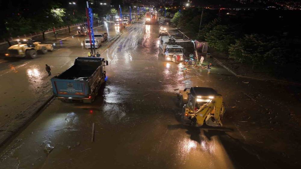 Büyükşehir Belediyesi ekipleri, sel sularının getirdiği çamurları temizleyerek gün ağardığında her iki bölgede hayatı normale döndürmek için büyük gayret sarf ediyor.