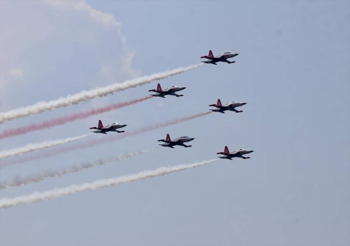 Türk Hava Kuvvetlerinin akrobasi timi Türk Yıldızları, Trabzon'un Of ilçesinde gösteri uçuşu gerçekleştirdi.