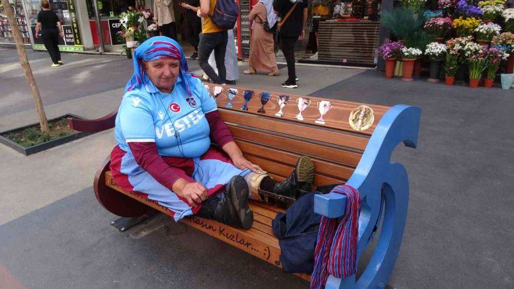 Trabzonspor’un Akyazı’da oynadığı maça bir kez gittiğini daha sonrasında ise gidemediğini kaydeden Taflan, “1963 yılında Trabzon’da doğdum. İki aylık iken felç geçirdim. 10 yıldan beri de yürüyemiyorum. Yaklaşık 2 yıl önce eski İçişleri Bakanı Süleyman Soylu ’ya benim için bir oturak yapılmasını istemiştim kendisi de Trabzon Büyükşehir Belediye Başkanı Murat Zorluoğlu’na söylemiş ve benim için buraya oturak yaptılar. Trabzonspor’un Avni Aker’deki tüm maçlarına gidiyordum. Stat Akyazı’ya taşınınca 1 defa gittim, daha sonra gidemedim. Gitmeyi çok istedim ama olmuyor. Akyazı uzak olduğu için gidemiyorum artık yaşlandım bundan sonra da gidemem. Oturduğum bankın üzerine yapılan kupalarda ismim yazıyor benim için sürpriz oldu. Bankın alt kısmında ise ‘En güzel Münevver çatlasın kızlar ’yazılı. Bank yapılalı iki gün oldu sabah 9.30’larda geliyorum saat 18.00 evime gidiyorum. Trabzonspor’un Beşiktaş’ı yenmesi için çok dua ettim” dedi.