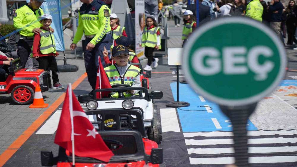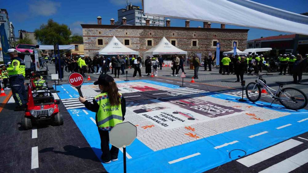 Samsun’da öğrenciler stantlar ve eğitici parkurlarda araç sürerek trafik kurallarını öğrendi.