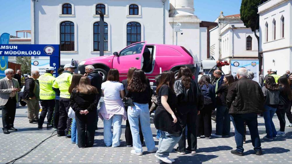 3-9 Mayıs Karayolu Trafik Haftası dolayısıyla Samsun’da Saathane Meydanı’nda stantlar ve eğitici parkurlar kuruldu. Polis, jandarma şapkası ile yeleği giyen minikler hem eğlendi hem öğrendi. Minikler yaya ve okul geçitleri, kavşaklar, trafik levhaları ve ışıklı sinyalizasyon işaretleri bulunan Trafik Eğitim Halısı üzerinde akülü araç sürerek trafik kurallarını öğrendi. Etkinliklerde lise öğrencileri ise sarhoş gözlüğü ile topa vurarak gol atmaya çalıştı. Emniyet kemeri takmadan yapılan sürüşlerde, araç içinde takla atma simülasyonu da uygulandı. Öğrenciler, uygulamalı olarak bindikleri araçta emniyet kemerinin önemini kavradıklarını ifade ederek, herkesin trafik kurallarına uyması gerektiğini söyledi. Programda trafik güvenliğinin sağlanmasında başarı gösteren polis ve jandarma ekiplerine başarı belgesi verildi. Programa İlkadım Kaymakamı Abdulkadir Demir, Samsun İl Emniyet Müdürü Ahmet Arıbaş, Samsun İl Jandarma Komutanı Tuğgeneral Mustafa Bahçepınar, Samsun Müftüsü Seyfullah Çakır, İl Gençlik ve Spor Müdürü Feyzullah Dereci ile vatandaşlar katıldı.