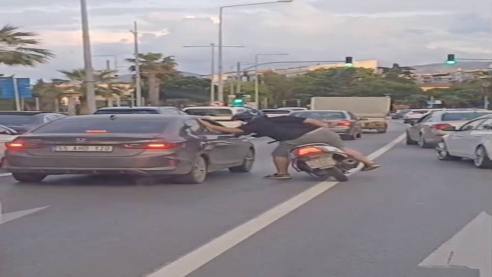 Sözlü tartışmanın büyümesiyle sinirlerine hâkim olamayan motosiklet sürücüsü, otomobilin yanına yaklaşarak sürücüye bağırdı ve ardından aracın kapısına sert bir şekilde vurdu. Kısa süreli gerilim, her iki tarafın da olay yerinden ayrılmasıyla sona erdi.