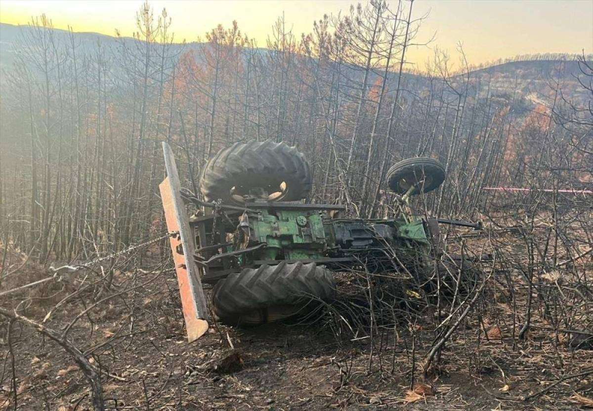 Bekirfakılar köyünde, ağustos ayındaki orman yangınının çıktığı alanda temizlik çalışmasında görev alan Mehmet Acar'ın (48) kullandığı 14 BJ 109 plakalı traktör devrildi.
