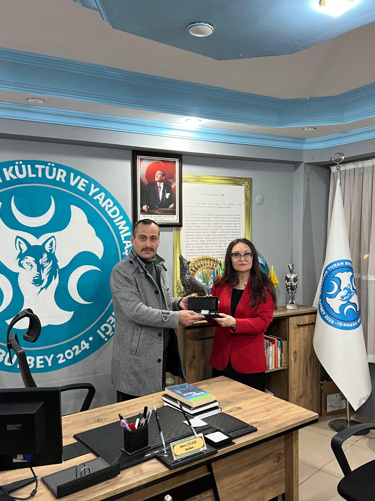 Turan Birliği Derneği Başkanı Barış Çelebi, derneği ziyaret eden Kazakistan Türk dillerini konuşan basın yayın başkanı Naziya Bissenova’yı ağırladı.