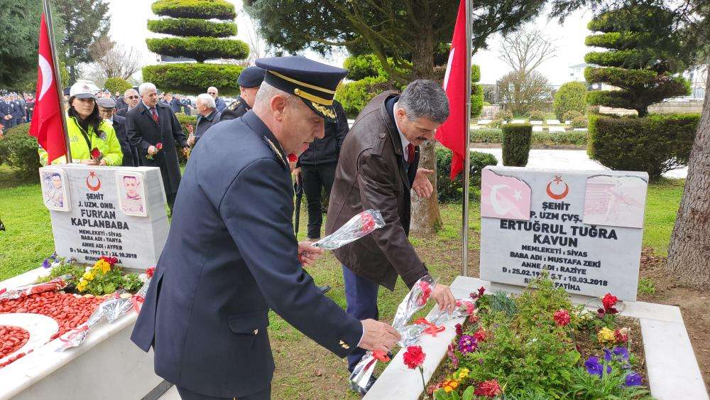Daha sonra Düzce Şehitliği'nde Kur'an-ı Kerim okundu, şehit kabirlerine çiçek bırakıldı.