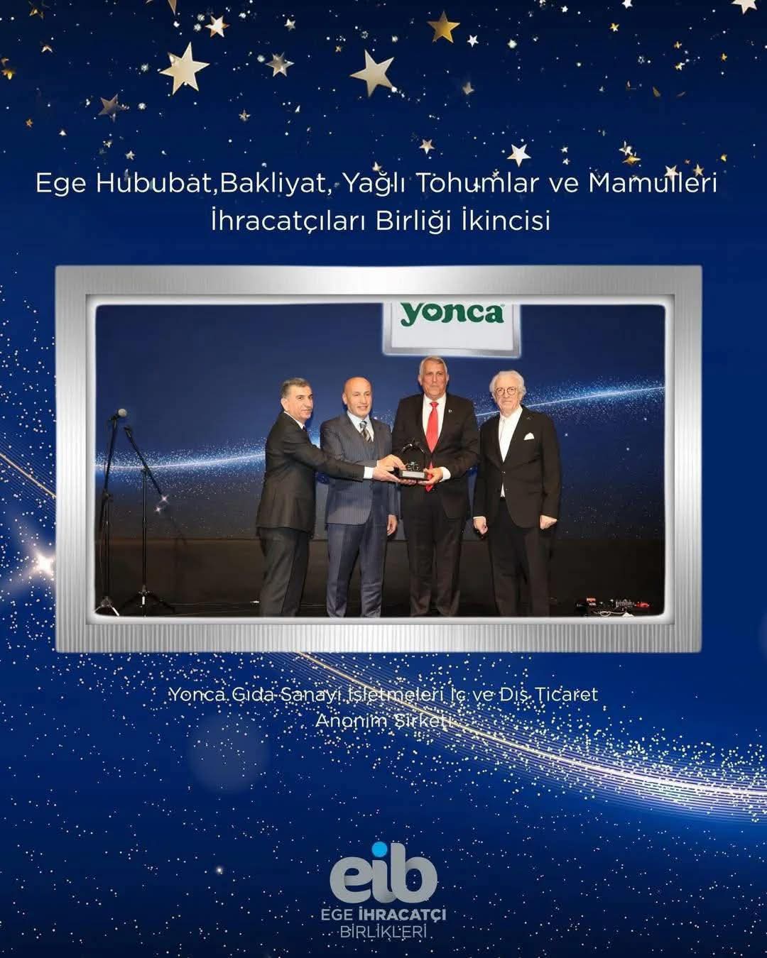 Manisa Ticaret ve Sanayi Odası firmalarından Ege Kuru Meyve Mamulleri İhracatçıları Birliği tarafından sektöründe en çok ihracat yapan Özgür Tarım Ürünleri birincilik ödülüne layık görüldü. Ege Yağlı Tohumlar ve Mamulleri İhracatçıları Birliği kapsamında Yonca Gıda ikincilik ödülünün sahibi olurken aynı zamanda Ege Yaş Meyve Sebze İhracatçıları Birliği tarafından sektöründe en çok ihracat yapan firmalar arasında üçüncü olarak bir başka önemli başarıya daha imza attı. Ege Kuru Meyve Mamulleri İhracatçıları Birliği’nde ise Osman Akça Tarım Ürünleri 3. ödülü kazandı.