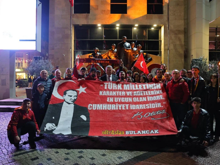 ultrAslan Bulancak ekibi de anlamlı bir pankartla katıldı. ultrAslan Bulancak Temsilcisi Ahmet Serkut Demirel, Cumhuriyetin 102. yılına özel hazırladıkları pankartla kortejde yer aldıklarını belirterek, şu ifadeleri kullandı: