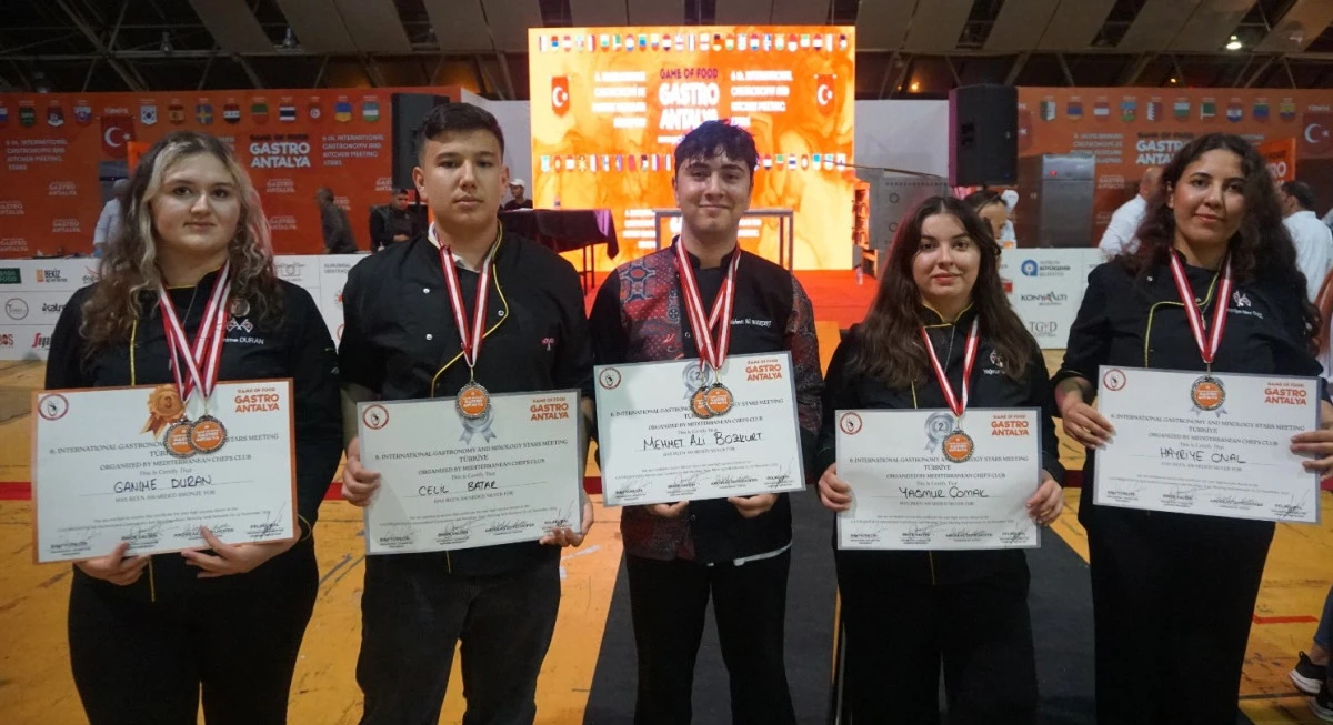 Türkiye’nin gastronomi kültürünün tanıtılması ve bu alanda ülkemizin küresel çapta öne çıkmasına katkı sağlayan etkinlikte “JP11- Yılın En İyi Lisesi Yarışması”nda Yağmur Çomak, Hayriye Naz Önel ve Mehmet Ali Bozkurt gümüş madalya; “JP4 -Lise Düzeyi Okulları Ana Yemek Yarışması”nda Celil Batar gümüş madalya, Ganime Duran bronz madalya; “JP1 -Lise Düzeyi Okulları Öğrenci Aşçı Balık Yarışması”nda Mehmet Ali Bozkurt ve Ganime Duran bronz madalya kazanarak farklı kategorilerde başarı sergilediler.