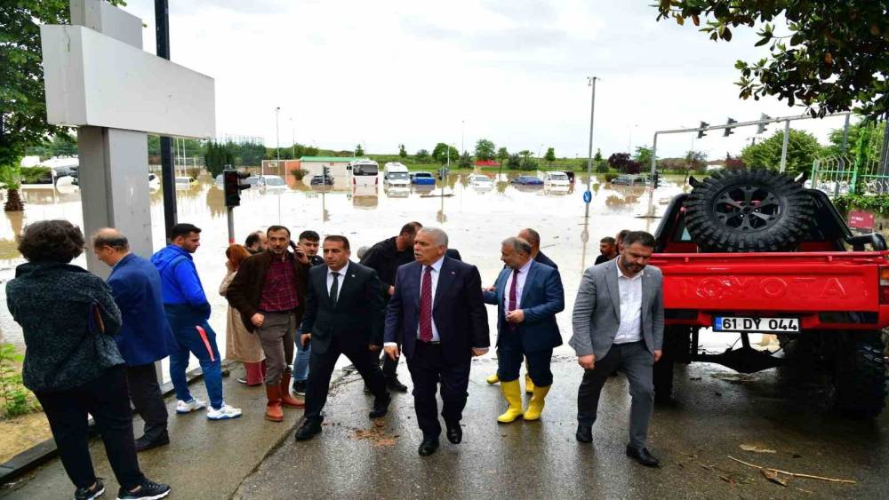 Trabzon Valisi Aziz Yıldırım, sel ve su baskınlarından zarar gören bölgelerde incelemelerde bulundu. İlk olarak Ortahisar ilçesinin Beşirli, Ayasofya çevresi, Yeşilova dereleri, sahil yolu başta olmak üzere birçok noktada ekiplerle birlikte sahada inceleme yapan Vali Yıldırım, çalışmalar hakkında yetkililerden bilgi aldı. Yoğun yağış sonrası oluşan olumsuzluklara karşı ilgili kurumlarla koordineli bir şekilde hareket ettiklerini belirten Yıldırım, vatandaşların can ve mal güvenliğinin öncelikleri olduğunu vurguladı. Afetten etkilenen vatandaşlara "Geçmiş olsun" dileklerini ileten Vali Yıldırım, sel riskine karşı vatandaşları dikkatli ve tedbirli olmaları konusunda da uyardı.