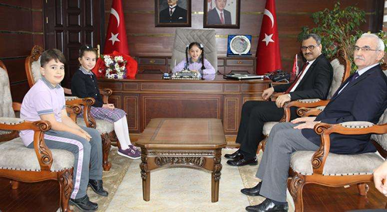 23 Nisan Ulusal Egemenlik ve Çocuk Bayramı kutlama etkinlikleri çerçevesinde Giresun Valisi Harun Sarıfakıoğulları, koltuğunu Abdullah Bozbağ İlkokulu 3-D sınıfı öğrencisi Zeynep Sude Harmanşah’a devretti.