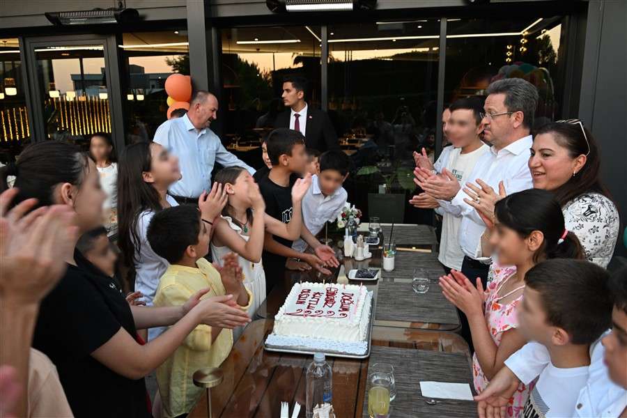 Çocuklarla tek tek yakından ilgilenerek, onlarla sohbet eden Vali Enver Ünlü ve eşi Sema Ünlü, çocuklarla birlikte doğum günü pastasını kesti.