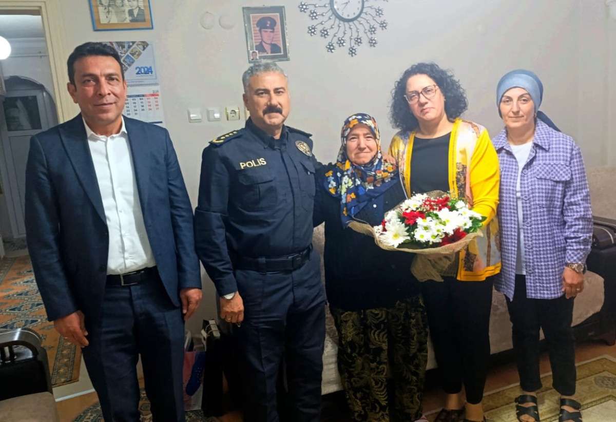 Manisa İl Emniyet Müdürü Fahri Aktaş, eşi Polis Eşleri Derneği Manisa Şubesi Başkanı Nuray Aktaş, Akhisar İlçe Emniyet Müdürü Turgut Coşkun ve eşi Ayşe Coşkun ile birlikte, Gaziantep ilinde hain teröristlerce düzenlenen silahlı saldırıda şehadete eren Kahraman Polisimiz Mehmet Bilir’in emaneti eşi Hatice Bilir’i Akhisar ilçesindeki ikametinde ziyaret ettiler.