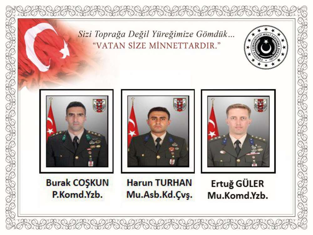 Pençe Kartal-2 Harekatında P.Komd.Yzb. burak Coşkun, Mu.Asb.Kd.Çvş. Hasan Tuhan ve Mu.Komd.Yzb. Ertuğ Güler şehit oldular.
