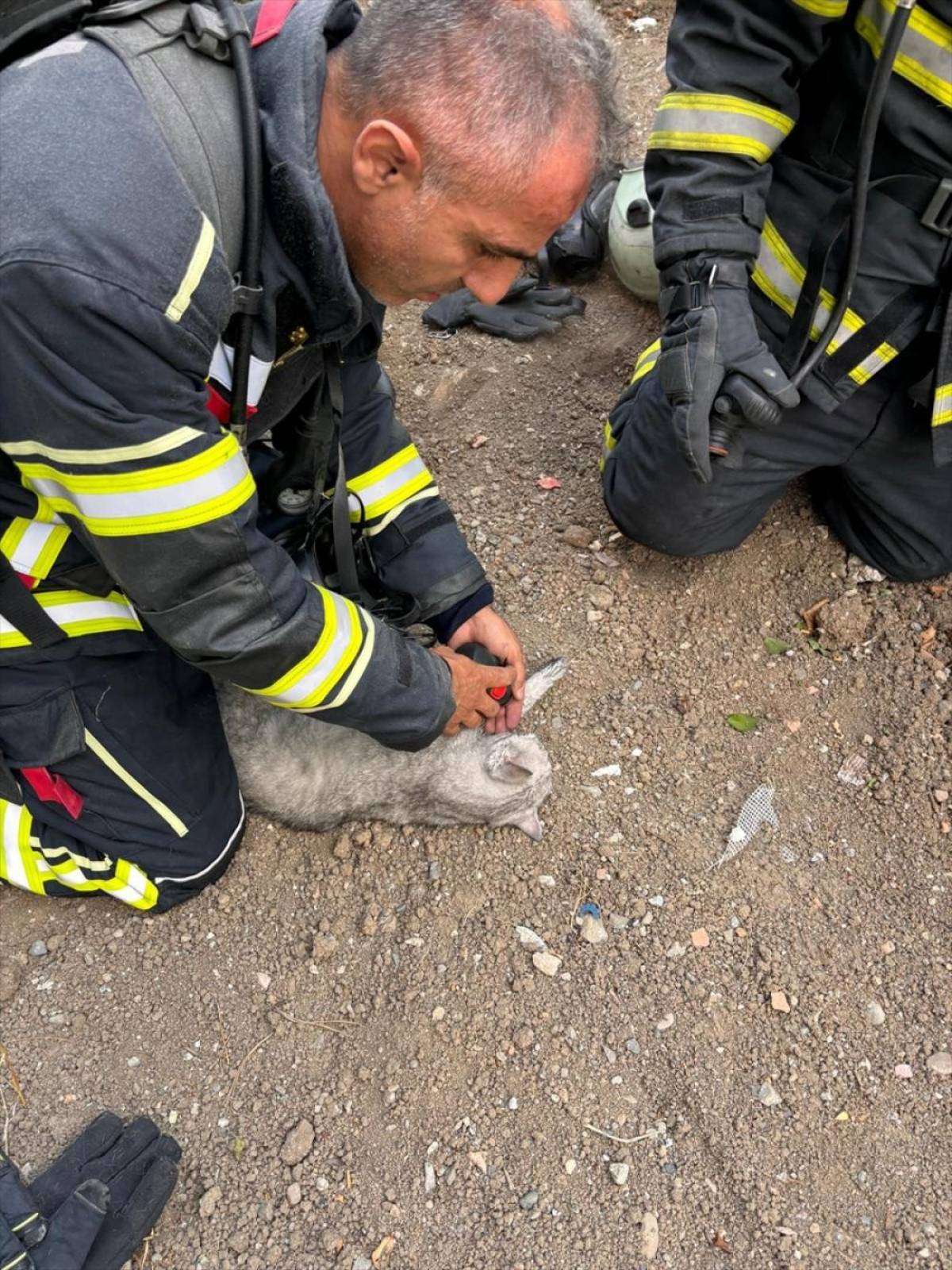 Yoğun dumandan bayılmış olabileceği değerlendirilen kedi, itfaiye ekiplerince ilk yardım müdahalesiyle oksijen verilerek hayata döndürüldü.