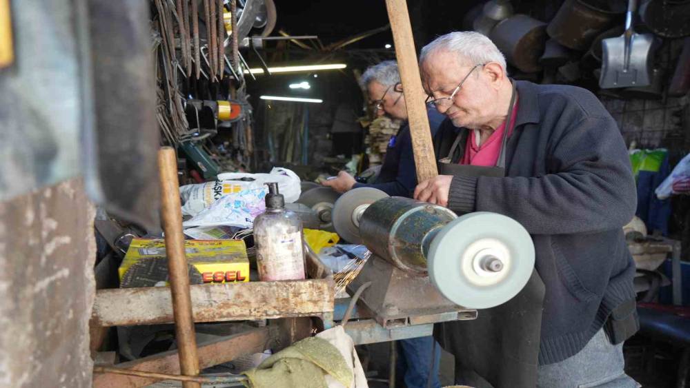 Samsun’un en eski aktif demircilerinden 75 yaşındaki İbrahim Germi, Kurban Bayramı öncesi bıçak, nacak ve baltaları bileyleyerek bayram hazırlığı yapan vatandaşlara hizmet veriyor. Germi, bulaşık makinesinde yıkanan bıçakların saplarının dağıldığını, ağızlarının bozulduğunu ve kullanılamaz hale geldiğini vurguladı.
