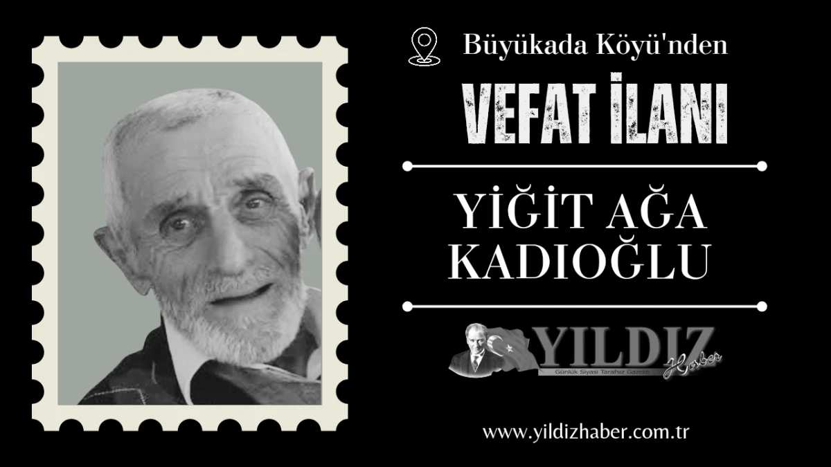 Merhum Yiğit Ağa Kadıoğlu’nun cenazesi, 22 Mart Pazar günü(yarın) Büyükada Köyü Düz Mahalle Camii’nde ikindi namazını müteakip kılınacak cenaze namazının ardından toprağa verilecek.