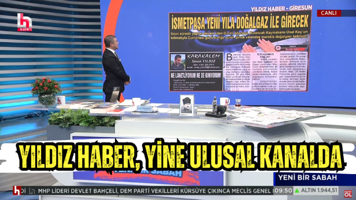 İsmail Küçükkaya Yıldız Haber Gazetesi 26 Aralık 2023 tarihli sayısında manşet haberi olan ‘İsmetpaşa yeni yıla doğalgaz ile girecek’ başlığını okuyarak Giresun ismini ulusal kanalda duyurdu.