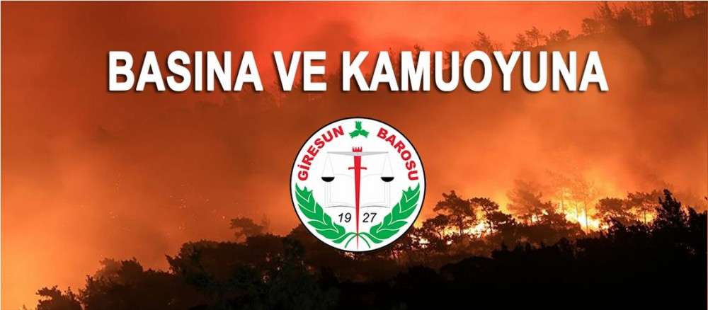 Giresun Barosundan yapılan yazılı açıklamada; ‘2021 yılının mayıs ayından bu yana Adana, Antalya, Aydın, Burdur, Denizli, Hakkari, Hatay, Isparta, İzmir, Mersin, Muğla, Osmaniye, Şırnak, Elazığ, Tunceli ve bir çok ilimizde daha önceki yıllarda olduğu gibi orman yangınları çıkmaktadır. Orman yangınlarında her türlü ağaç, otlak alan ve hayvanların barınma yerleri yok olmakta ve bir bütün halinde canlı yaşamı olumsuz etkilenmektedir’.