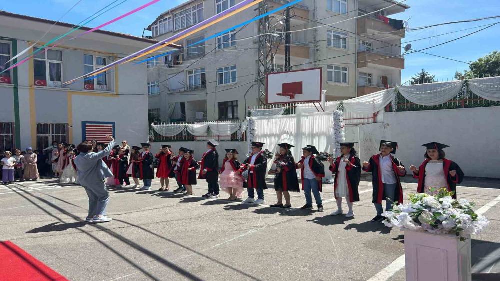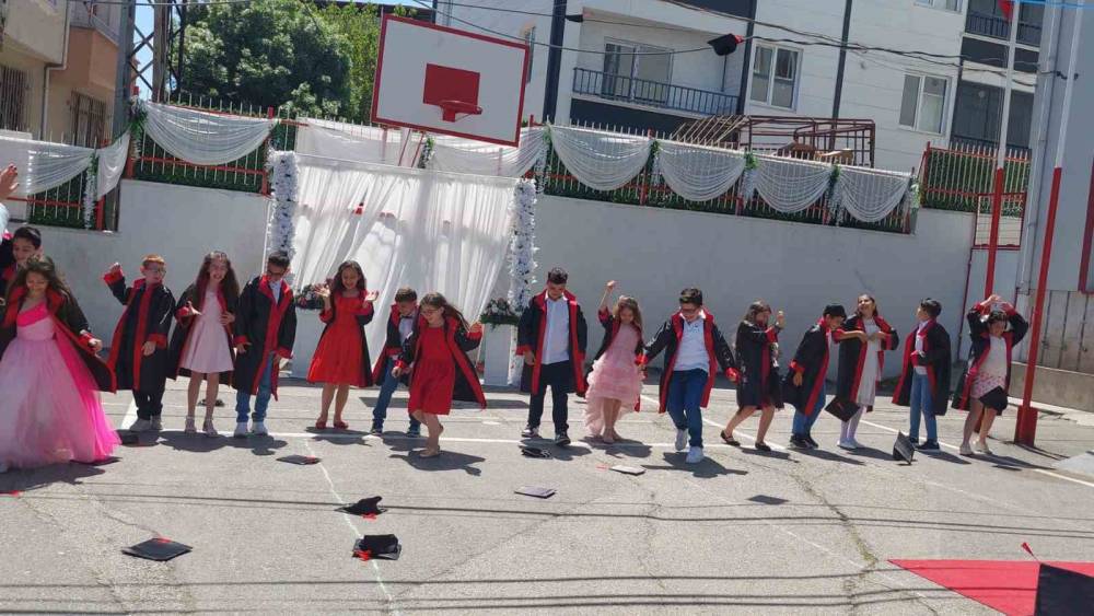Kep atma töreni sırasında duygulu anlar yaşandı. Öğretmenlerin ve çocukların gözlerinde mutluluk ve hüzün aynı anda okundu. Kep atmanın ardından tören sona erdi.