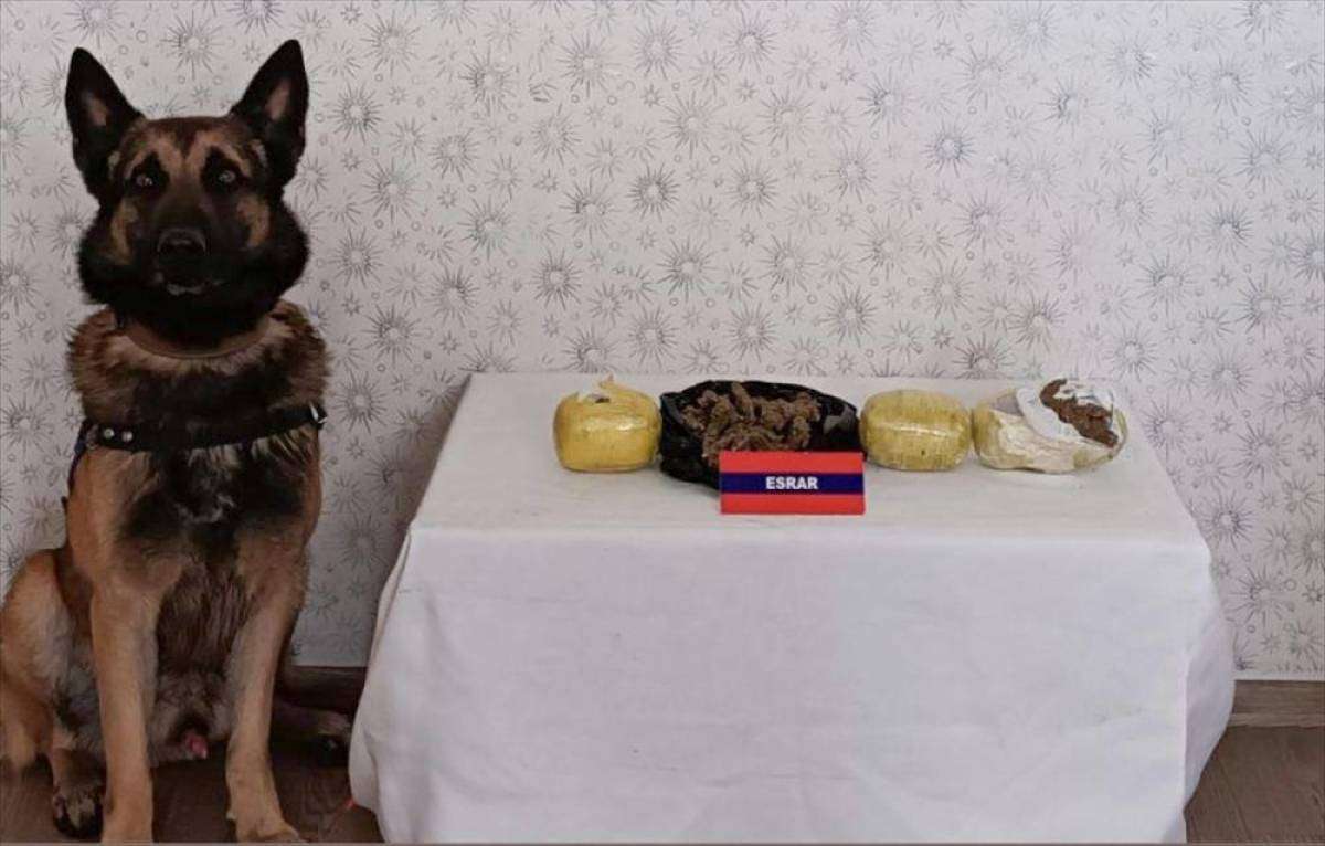 Narkotik köpeği "Asır"ın kullanıldığı aramada, aracın bagajında çuvalın içerisinde bulunan bebek maması kutusuna gizlenmiş 1 kilo 64 gram kubar esrar ele geçirildi.