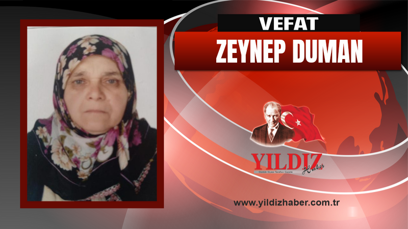 Kovanlık Beldesinden merkez mahalleden Samittin Duman’ın eşi Zeynep Duman vefat etti.
