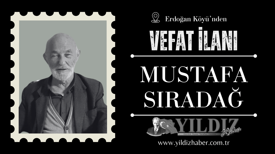 Erdoğan Köyü'nden Safiye Sıradağ'ın eşi, Nermin Yıldız, Fatma Telli, Birsen Henden, Filiz Sıradağ, Betül İnce ve Emel Bay'ın babaları Hacı Mustafa Sıradağ, İstanbul'da vefat etti.