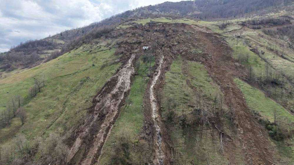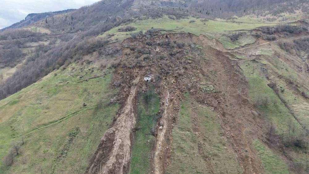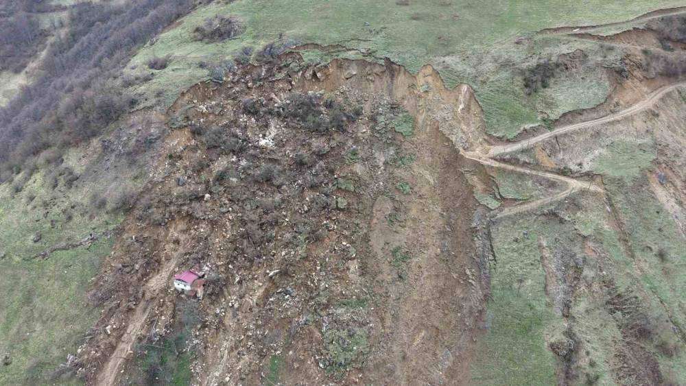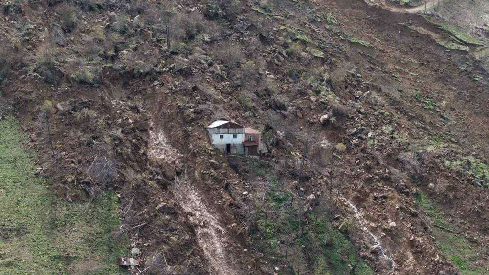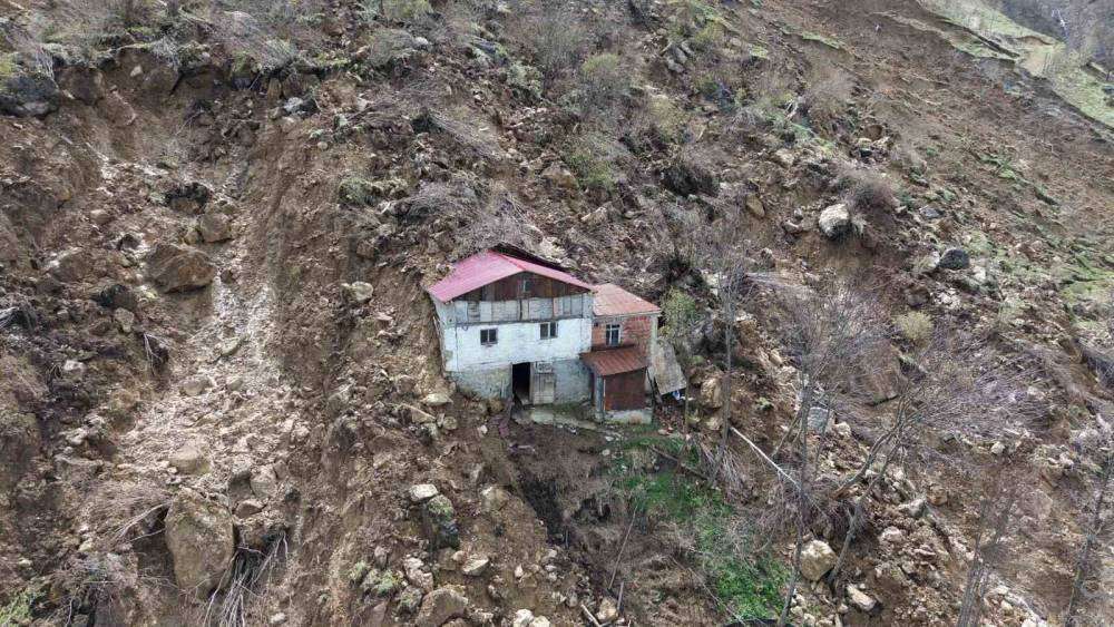 Heyelanın ortasında kalan ev facianın boyutunu ortaya çıkardı