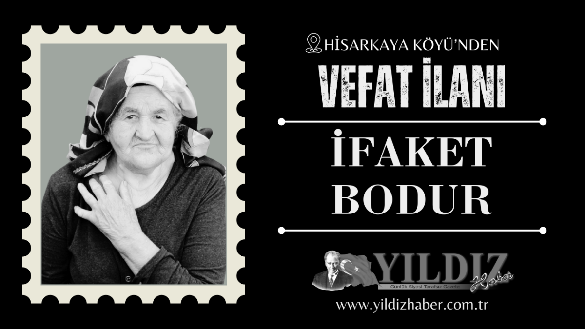 Hisarkaya Köyü’nden, merhum Şükrü Bodur’un eşi İfaket Bodur vefat etti.