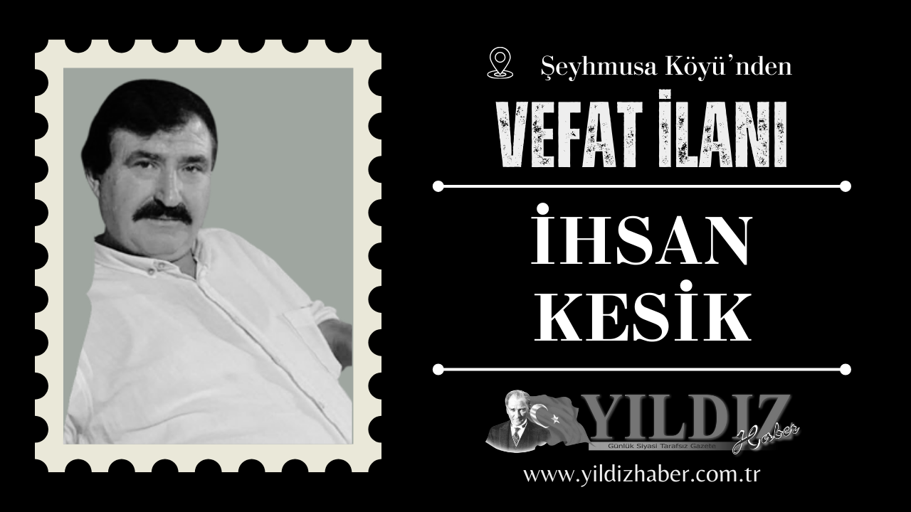 Giresun'un Bulancak ilçesi Şeyhmusa köyünden, Kesikoğullarından Osman Kesik’in oğlu ( Merhum) Aslan, Hasan, Emine, Pembe, Dudu, Sefine ve Hamdiye’nin kardeşleri, Serdar, Ekrem ve Filiz’in babaları İhsan Kesik vefat etti. Cenazesi 19 Nisan 2025 Cumartesi (Bugün) öğle namazına müteakiben Bulancak orta camide kılınacak cenaze namazından sonra Şeyhmusa Köyü aile kabristanlığında toprağa verilecek.
